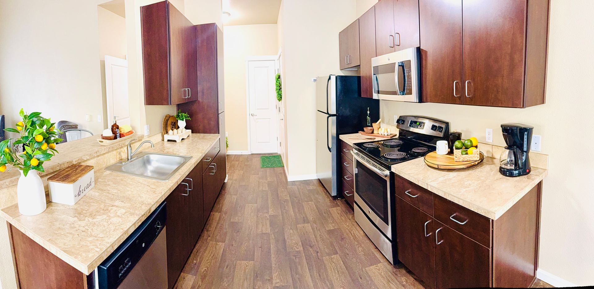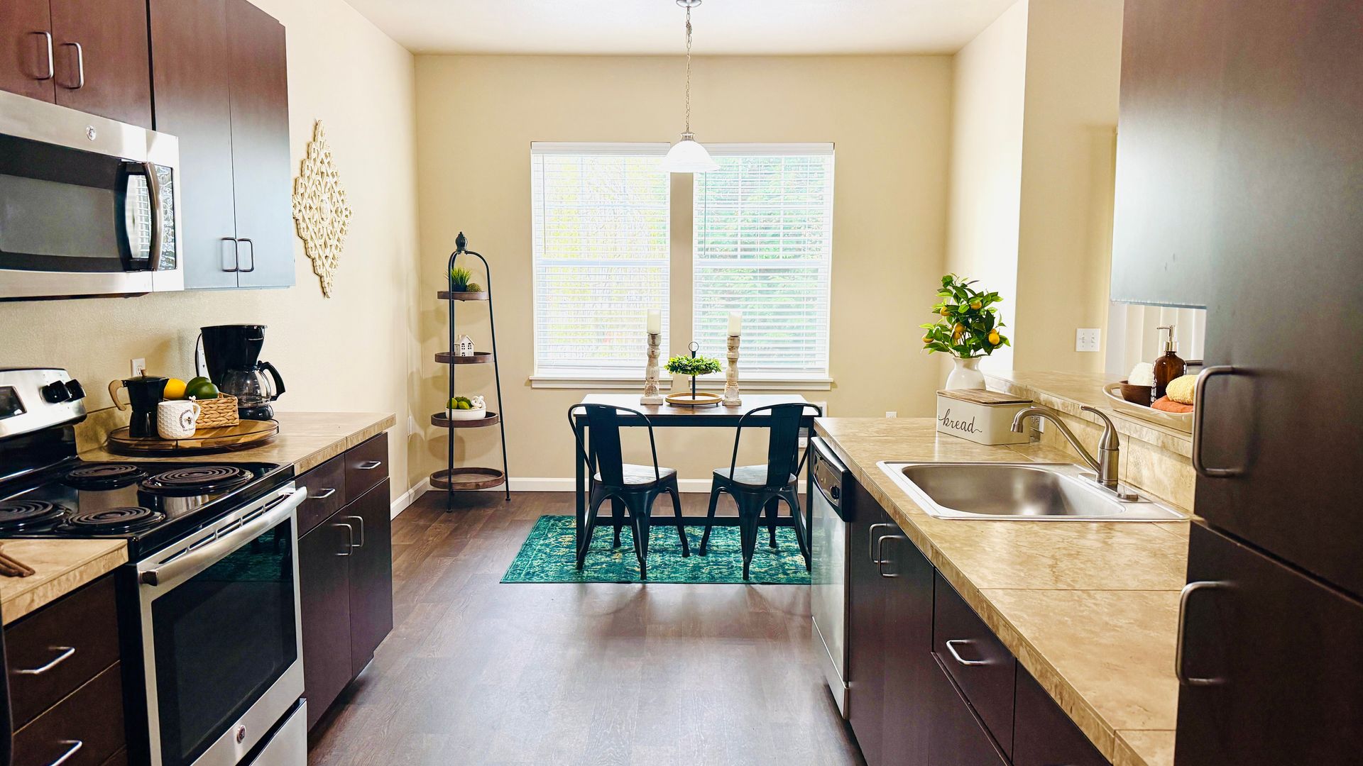❖ Full size appliances including a dishwasher, stove, microwave and refrigerator.