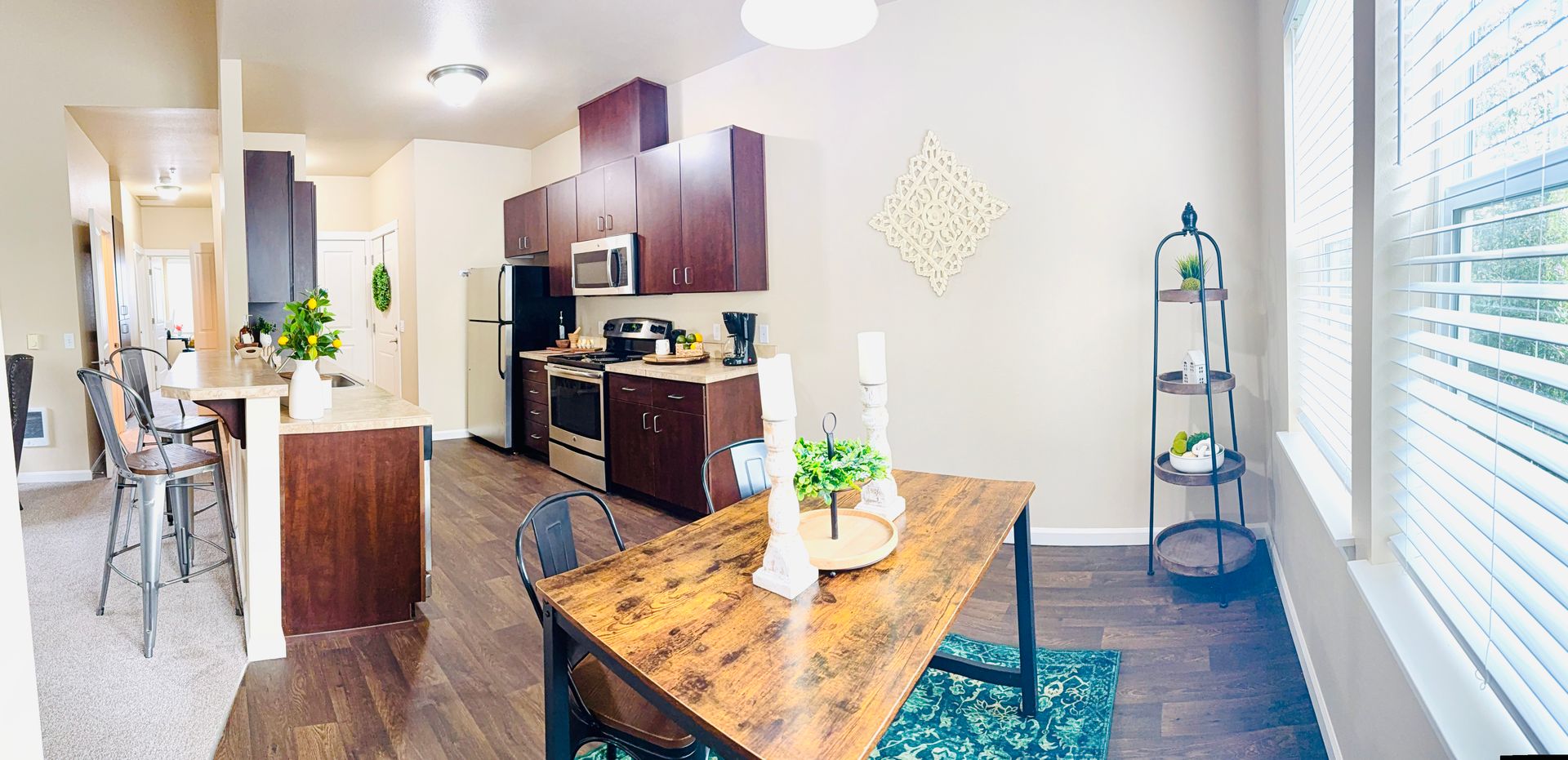 ❖ Brand new rich wood grain vinyl flooring in your kitchen dining room and restroom.